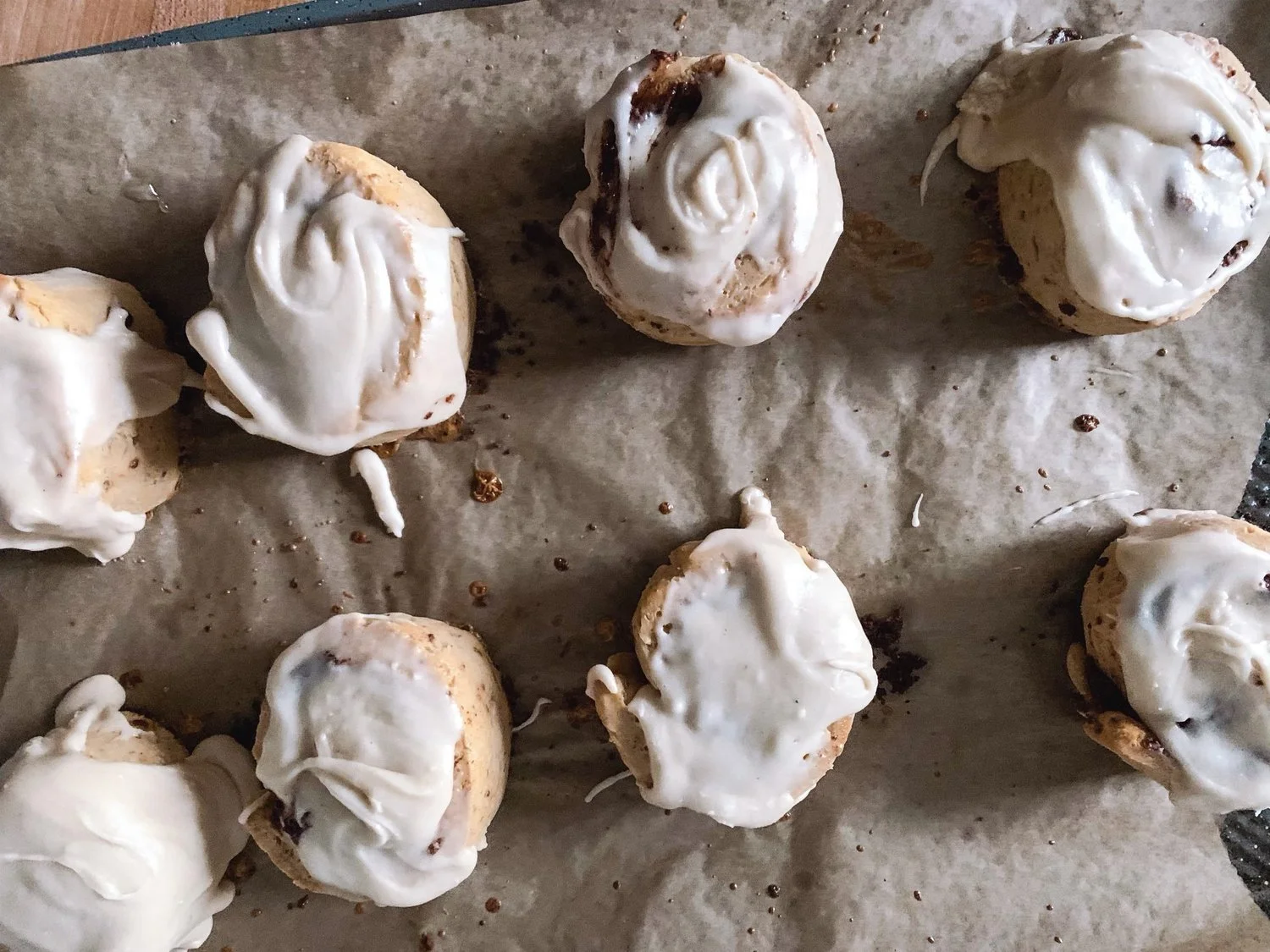 One morning I woke up with a craving for cinnamon rolls. After searching the internet for a healthy-ier recipe, I found the original from King Arthur. Below are our edits to the recipe - decreasing the sugar content dramatically while maintaining the tasty-ness of this classic dessert. This recipe is a labor of love, but so worth it in the end!