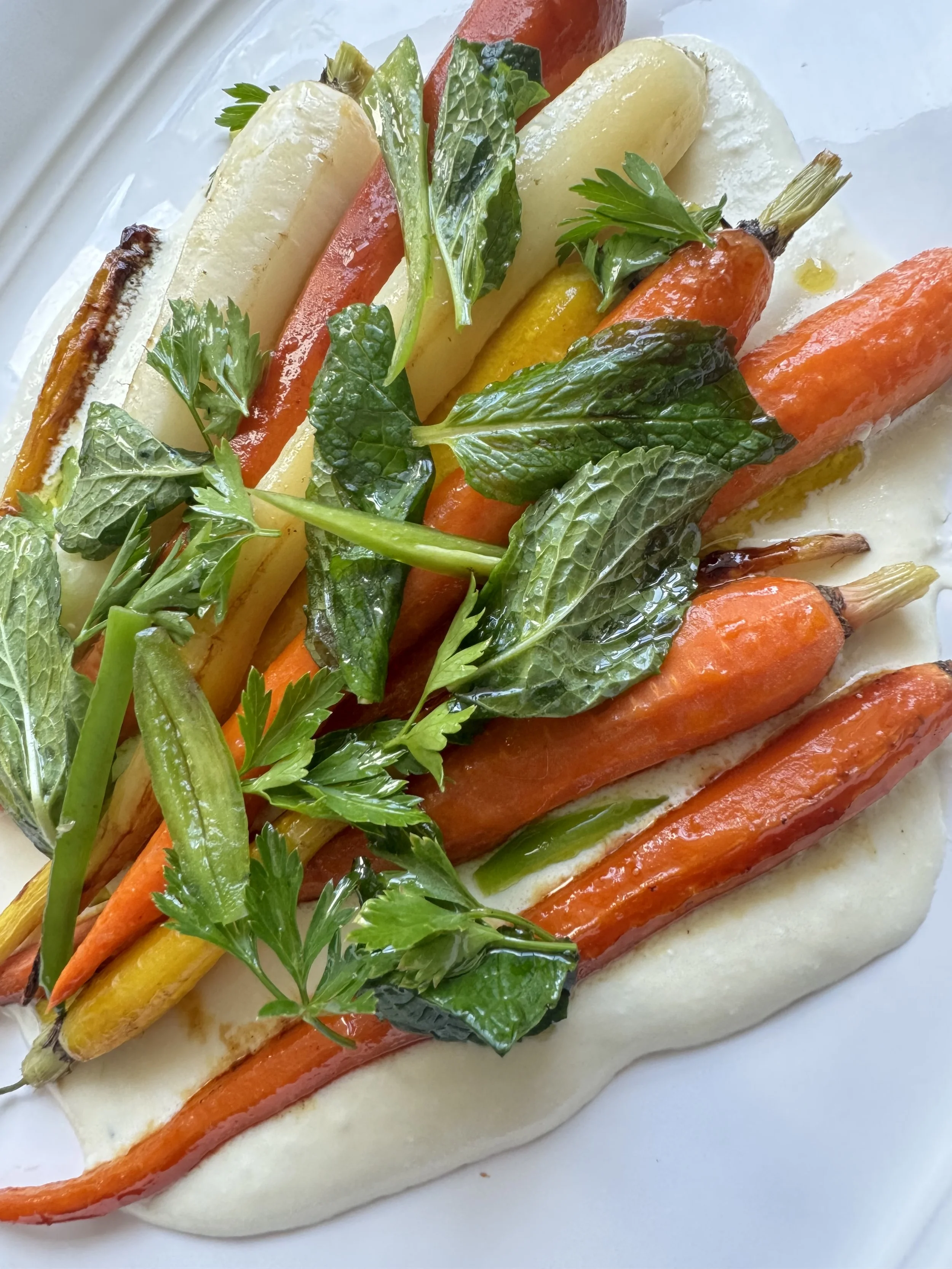 Chef Nicole’s Honey Roasted Carrots with Whipped Feta, Herbs + Fresno